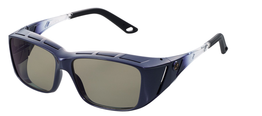 フレーム各部にいくつも設けられたエアインテークが通気性を確保。確実に顔を覆う高い遮光性を備えながらも、フレーム重量22gの軽量化を実現。耳への圧迫感が少ない形状のエラストマー製モダンが汗ズレを防止。金属芯を内蔵しており眼鏡の上から重ね掛けた際のフィット感も調整可能。