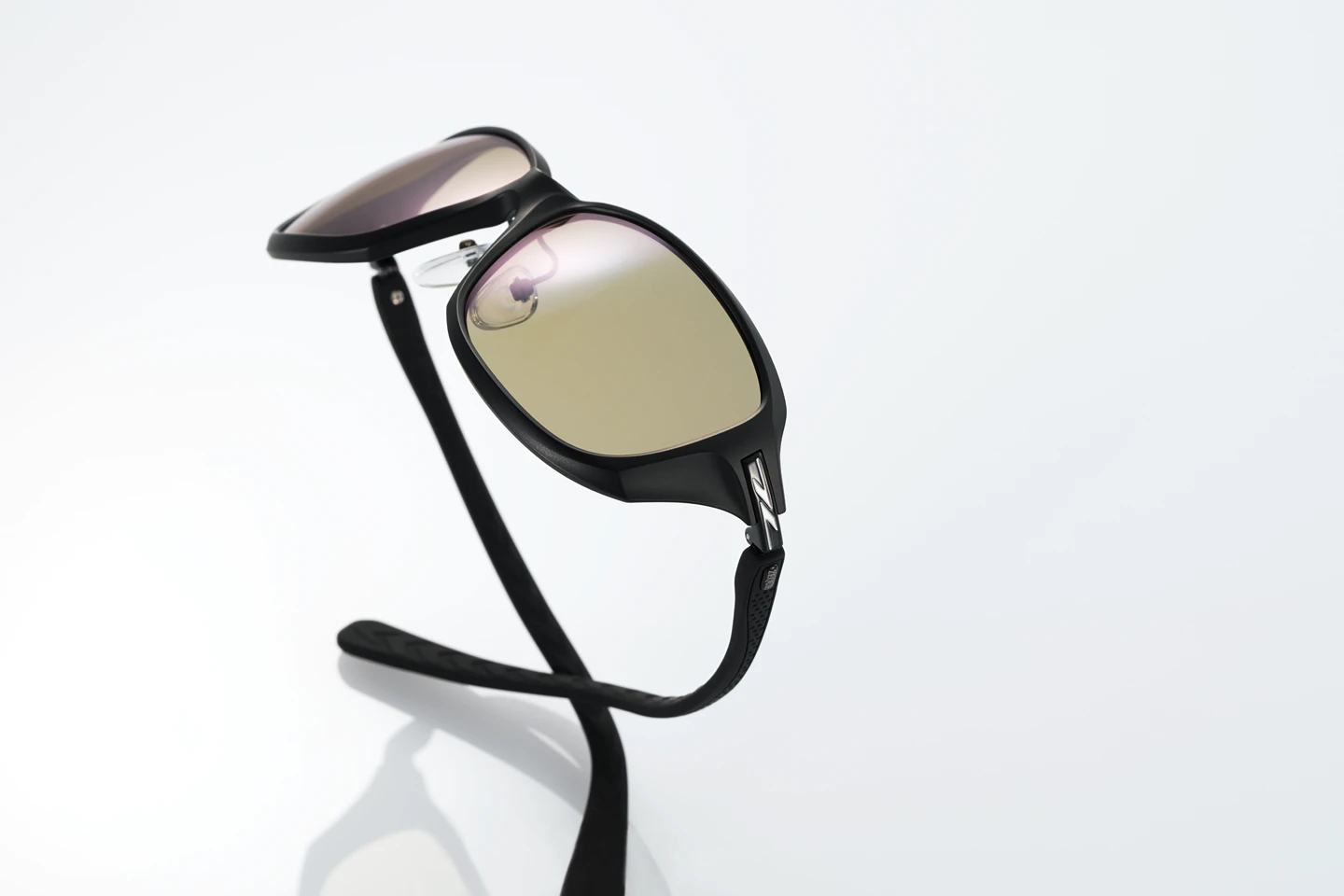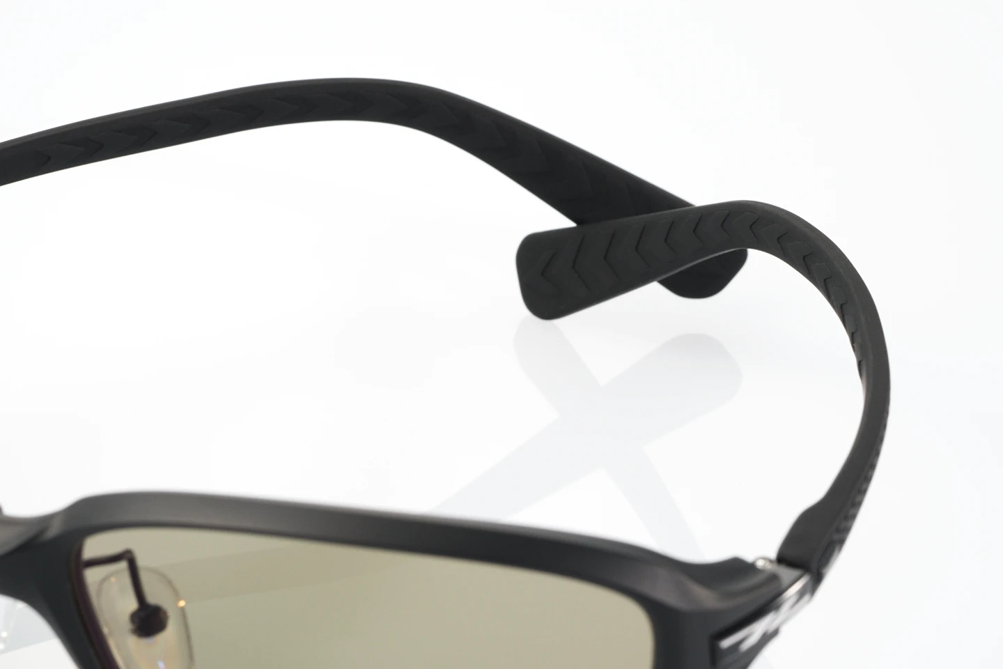 TIDAのフロントデザインを一回り大きく再設計。目元をカバーするように覆い、外光の侵入を抑える大型フロント。周辺視野まで鮮明に捉える広い視界。頭部を包み込むような掛け心地のロングテンプルが、グリップ効率と重量バランスを両立。ラージシルエットながらズレを感じさせない軽さとフィット感で、躍動するスポーツシーンに。